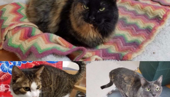 These three little kittens didn’t lose their mittens, but lost their home instead. Mea, Esme and Phoebe are staying with us while disabled veteran mom, Annette, struggles to find affordable housing.