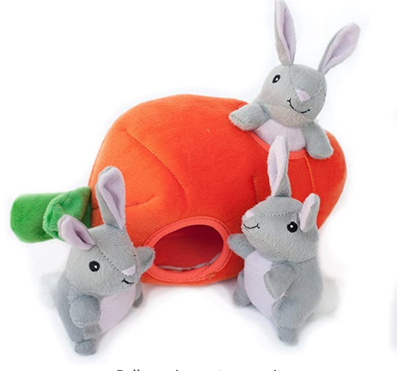 Amazon reviewers loved this toy! Hide the rabbits inside the carrot and have your dog