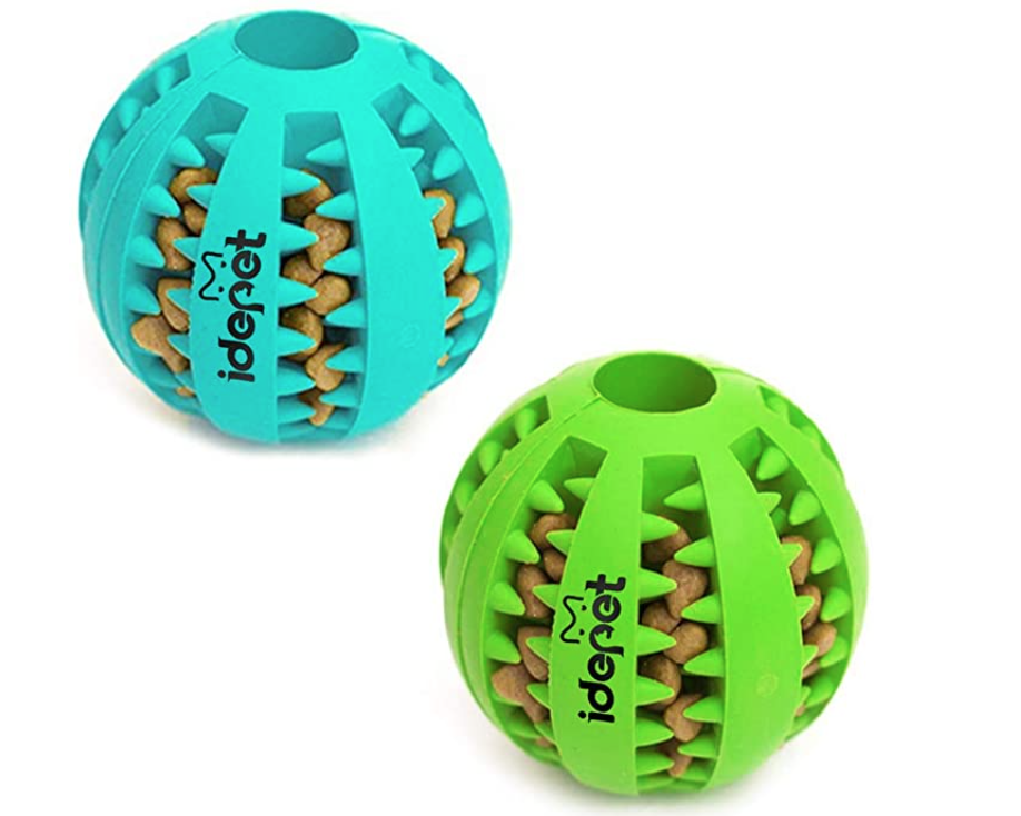 Reviewers raved about this toy. You can stuff it with kibble, cheese, peanut butter or