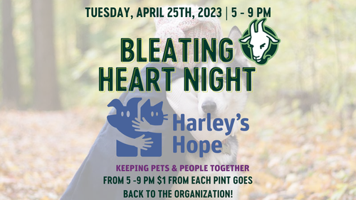 Spring is also kick-off time for community events. Our volunteers work hard to either man our booth at other groups’ events or to help plan and execute our own events. Either way, we appreciate you showing up to support HHF or, if you can’t attend, help share postings and information with your animal-loving friends and family. First up? Bleating Hearts Night at the Goat Patch Brewing Company in Colorado Springs on April 25th. Come on down to raise a glass in support of Harley’s Hope and Keeping Pets and People Together!