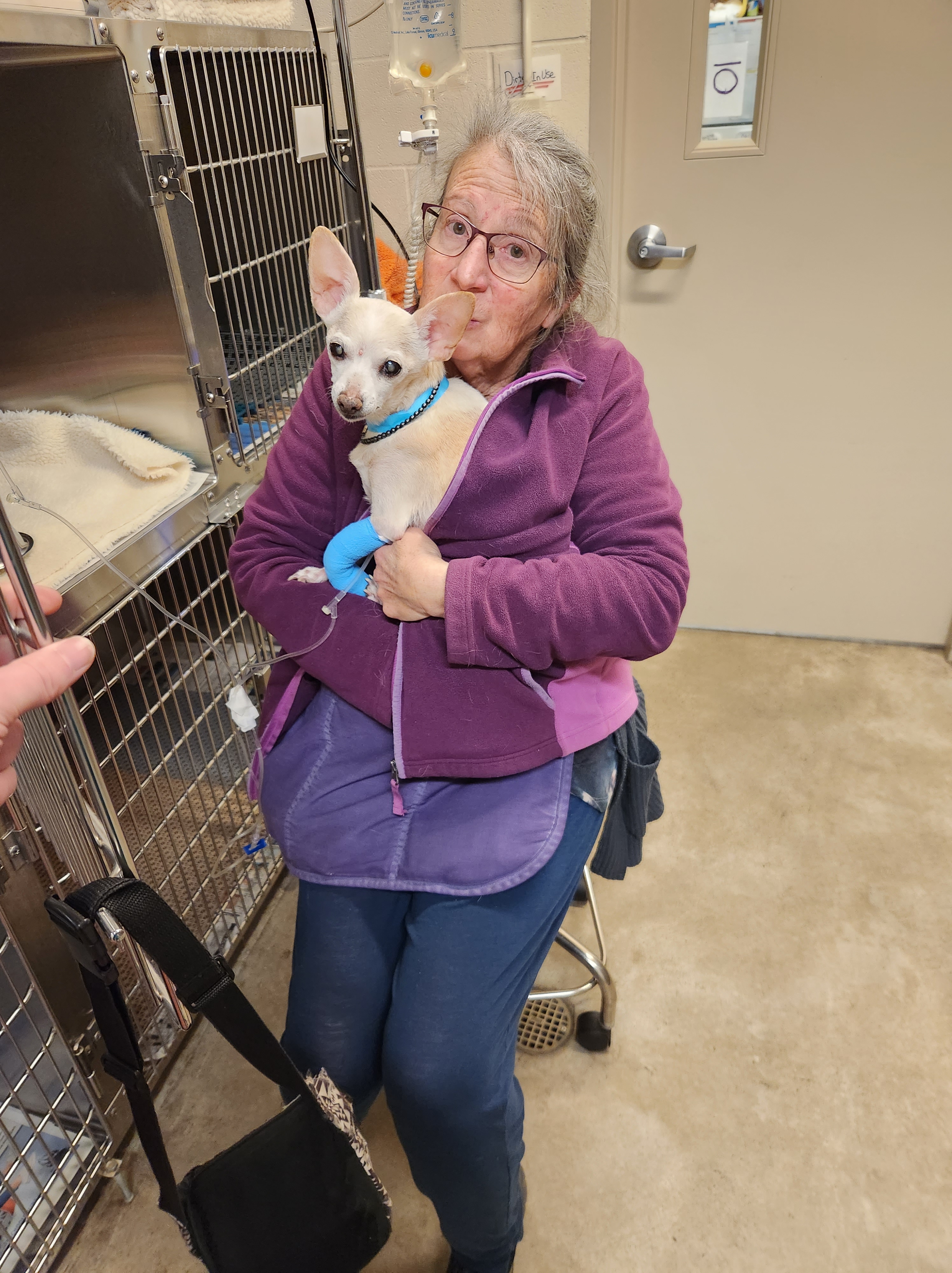 Not all of our cases involve trauma. Sometimes chronic health conditions like diabetes can cause an emergency like this one. Star was recently hospitalized for treatment of pancreatitis. This 13-year-old pup also battles diabetes, but her person, Virginia, is diligent in working with Star’s veterinarian to manage the disease. As a retiree, Virginia needed a little extra help with Star’s hospitalization and HHF was happy to assist.