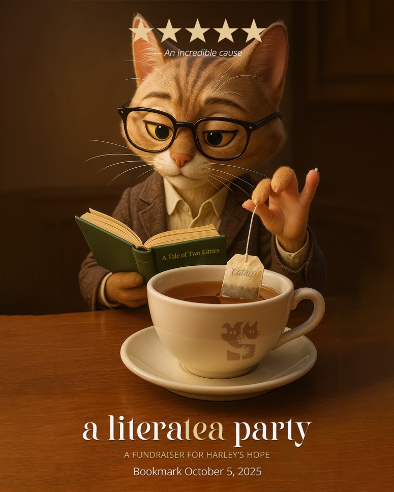 Those of you who enjoyed our Mad Hatter Tea in 2023, will be happy to know that we’re hosting a literary tea on October 5th called the LiteraTea Party. We’ll be celebrating both National Book Month and National Pet Wellness Month, a cause near to our hearts. So mark your calendar and join us at the Black Forest Community Center for a fun event to raise much-needed funds for pets in need.
